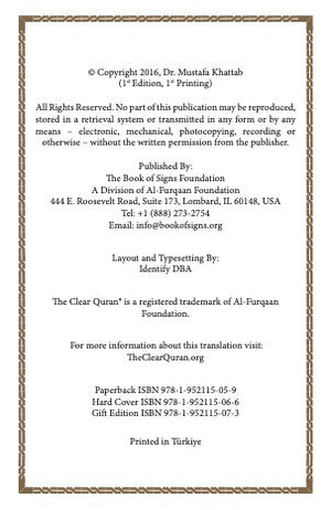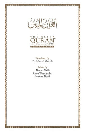 For a translation to do justice to the Quran and capture its elegance and vigor, it has to be accurate, smooth, eloquent, and accessible. Unlike most popular translations, The Clear Quran® masterfully passes on all counts. To achieve accuracy, the translator has made use of the greatest and most celebrated works of old and modern tafsir (Quran commentaries), and shared the work with several Imams in North America for feedback and insight. For clarity, every effort has been made to select easy to understand words and phrases that reflect the beauty, flow, and power of the original text. Along with informative footnotes and Sura (chapter) introductions, verses have been grouped and titled based on their themes for a better understanding of the chapters, their main concepts, and internal coherence. Thanks to our dedicated team of scholars, editors, and proofreaders, we believe that what you are holding in your hands now is the finest translation of the Final Revelation.